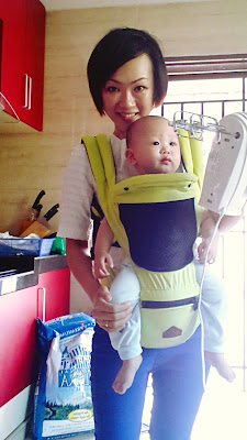I enjoy cooking and baking for the little one. Most of the times, I leave him on the kitchen floor, playing with saucer and pans, and he's quite happy with it. But there are also times that he got bored and wanted to check out what I was up to. The hipseat is God-sent for occasions like this.